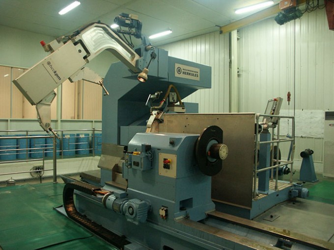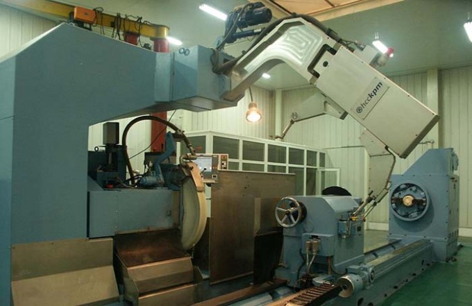 軋輥磨床為金屬切削機(jī)床,由床身、頭架、尾架、托架、縱橫拖板、磨頭、測(cè)量架及電氣數(shù)控系統(tǒng)組成,分為承載系統(tǒng)、驅(qū)動(dòng)系統(tǒng)、磨削系統(tǒng)、測(cè)量系統(tǒng)和控制系統(tǒng)五個(gè)子系統(tǒng)。工件由頭架、尾架和托架支撐,并由頭架驅(qū)動(dòng)旋轉(zhuǎn)。數(shù)控系統(tǒng)根據(jù)軋輥表面母線的數(shù)學(xué)模型,控制機(jī)床作多軸復(fù)合運(yùn)動(dòng),在運(yùn)動(dòng)過(guò)程中實(shí)現(xiàn)砂輪對(duì)輥面金屬的磨削。在線測(cè)量系統(tǒng)實(shí)時(shí)地將測(cè)量數(shù)據(jù)反饋給磨床控制系統(tǒng),并由控制系統(tǒng)對(duì)機(jī)床出閉環(huán)控制,從而完成對(duì)工件的精密加工。