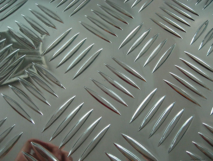 五條筋花紋鋁板又成為柳葉形花紋板,鋁合金花紋板。具有良好的防滑能力,而被廣泛應用在建筑(地板)平臺設計等方面。由于鋁板表面的花紋是按照五條凹凸花紋按照相對平行排列,而每款花紋與其它花紋之間呈現60-80度夾角,所以這款花紋具有防滑性能。國內通常采用五條筋花紋鋁板作為防滑而用,具有良好的防滑效果,價格加便宜。